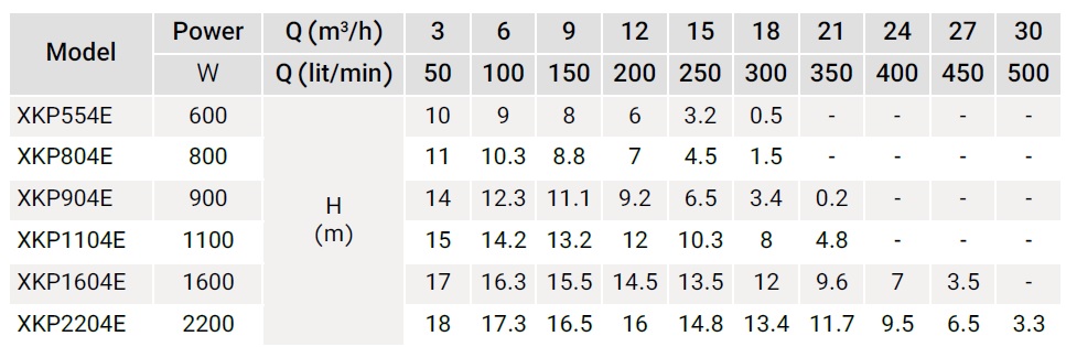 مشخصات فنی الکتروپمپ استخری 800 وات XKP804E