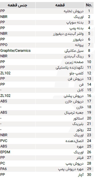 | جنس بدنه پمپ | پلاستیک مهندسی شده |