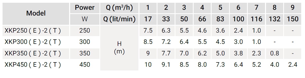 مشخصات فنی الکتروپمپ استخری 350 وات XKP350E-2