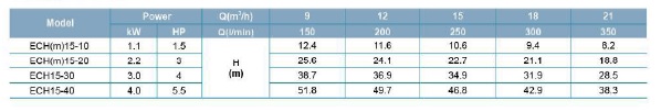 مشخصات فنی پمپ افقی طبقاتی لئو مدل ECH 15-40