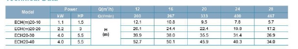 مشخصات فنی پمپ افقی طبقاتی لئو مدل ECH 20-40