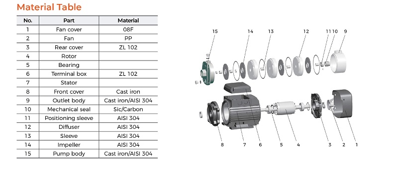 - بدنه پمپ: استنلس استیل یا چدن با پوشش ضدخوردگی (بسته به مدل)