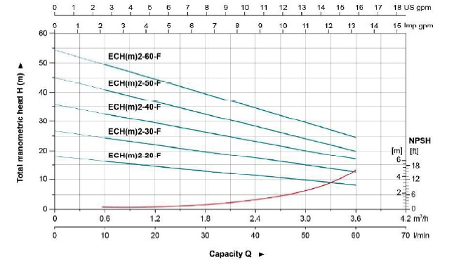 مشخصات فنی پمپ افقی طبقاتی لئو مدل ECHm 2-50-F